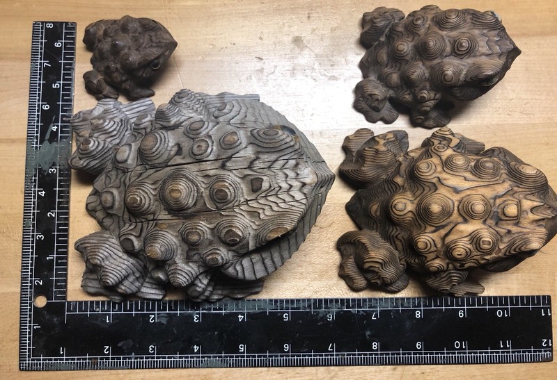 Valuable: Rare Vintage Hand Carved Old Growth Cryptomeria Japanese Wood Toad Family