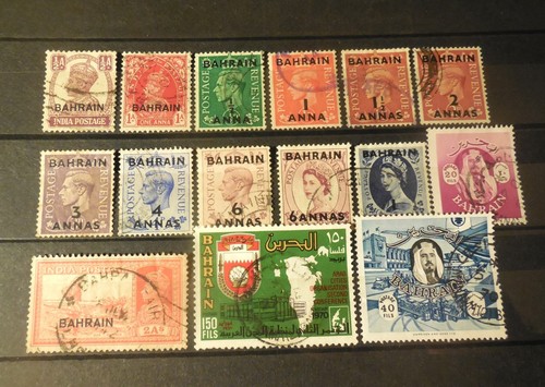 Collecters Item: (15) Vintage Bahrain (British) Stamps (1930S-1960S) = Used