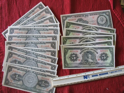 Collecters Item: 18 Uncirc American Bank Note Company 1, 5, And 10 Pesos From 1957,1961 & 1963
