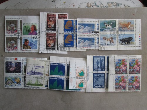 Collecters Item: 24 Different Used Canadian Plate Blocks Incl. High Values
