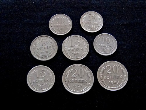 Collecters Item: 1923 - 1930. Set Of 8 Silver Coins 8. All Different Ussr/ Soviet Union