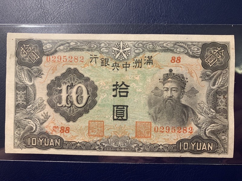 Collecters Item: 1944 China Central Bank Of Manchukuo, 10 Yuan, Pick# J137A, About Unc