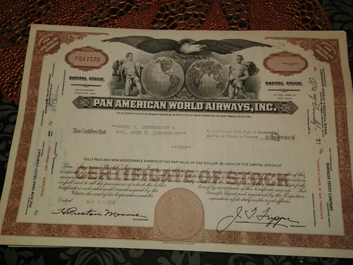Collecters Item: Pan Am Stock Certificate Obsolate
