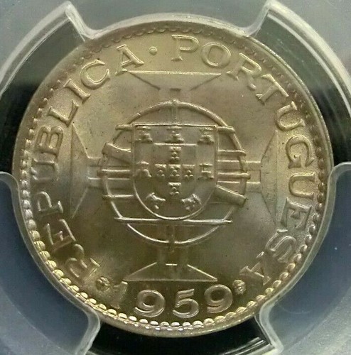 Collecters Item: Pcgs Ms65 Secure-India/Portugese 1959 Arms Escudos Gembu Scarce