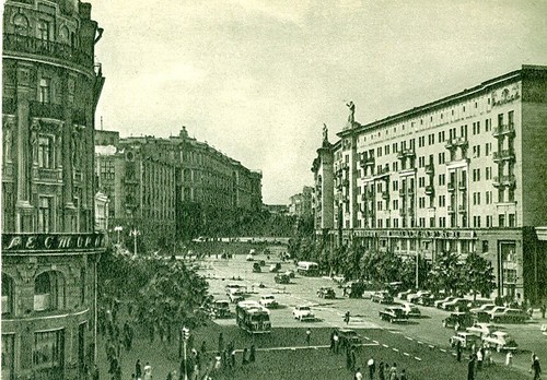 Russia 1957 Street Scene Postcard From Moscow To Prague Czechoslovakia