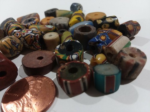 40 Loose Antique Beads: 18Th & 19Th C Chevrons, Millefiori, French Cross, Etc