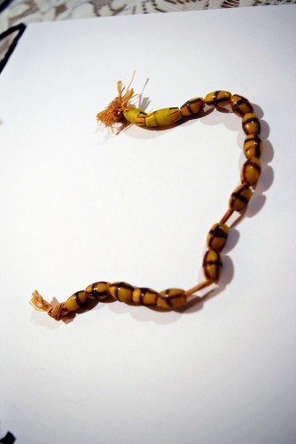 Antique French Cross Beads (14) & Rare Yellow Composite Chevron Beads (2)