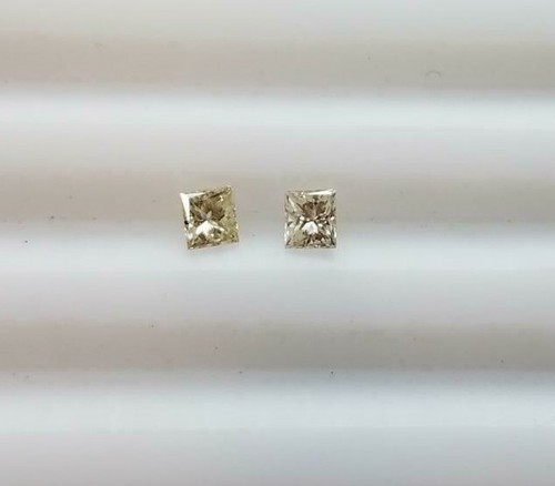 Natural Diamondsx2, Princess 2.5X2.3Mm, .17Tcw,Si1-Si2,Yellow Located Us, #0-02A
