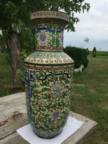 Valuable: Rare Large Vase With Flowers Bats Blue Foot Vase