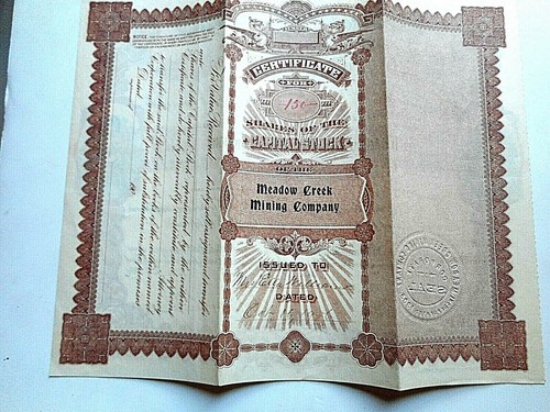 Collecters Item: 1906 Meadow Creek Mining Company Arizona Stock Certificate Imogene Mine Newsome