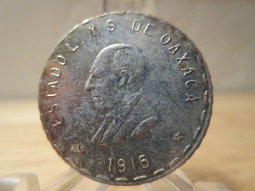 Collecters Item: 1915-Bu Revolution Mexico Un Peso Silver Coin Oaxaca Toned Moneda Provisional