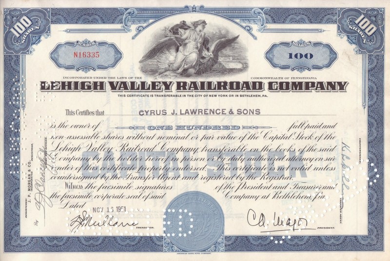 Collecters Item: 1949 & 1951 Stock Certificates For Lehigh Valley Railroad Co