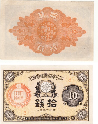 Collecters Item: Japan 10 Sen Banknote,# 3,Uncirculated