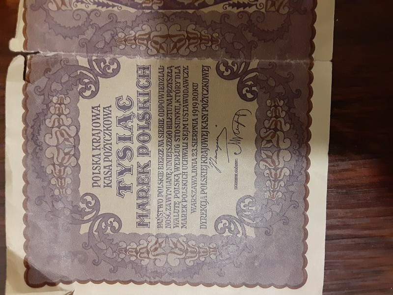 Collecters Item: Poland Banknote - Polska Krajowa - 1000 Tysiac Marek - Year 1919 - Free Shipping