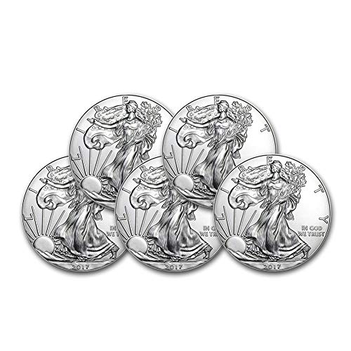 2017 Lot Of (5) 1-Ounce American Silver Eagle $1 .999 Fine Silver Brilliant Uncirculated Us Mint