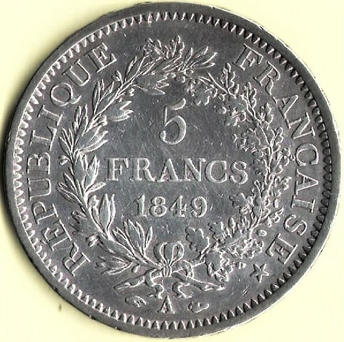 Collecters Item: France 5 Francs (1849 -1852) Silver Ceres Head - Vf