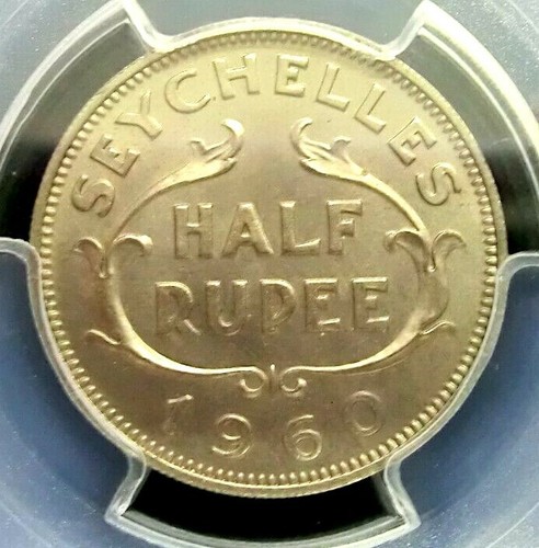 Collecters Item: Pcgs Ms65 Secure-Seychelles 1960 Elizabeth Ii 1/2 Rupee Gembu Scarce