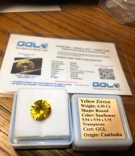 G.G.L.- Certified- 4.30 Cts.- Vvs -Natural- Cambodian - Yellow-Zircon Gemstone