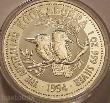 1994 Australian Kookaburra Love Birds 1 Oz. Silver Coin *Bu*