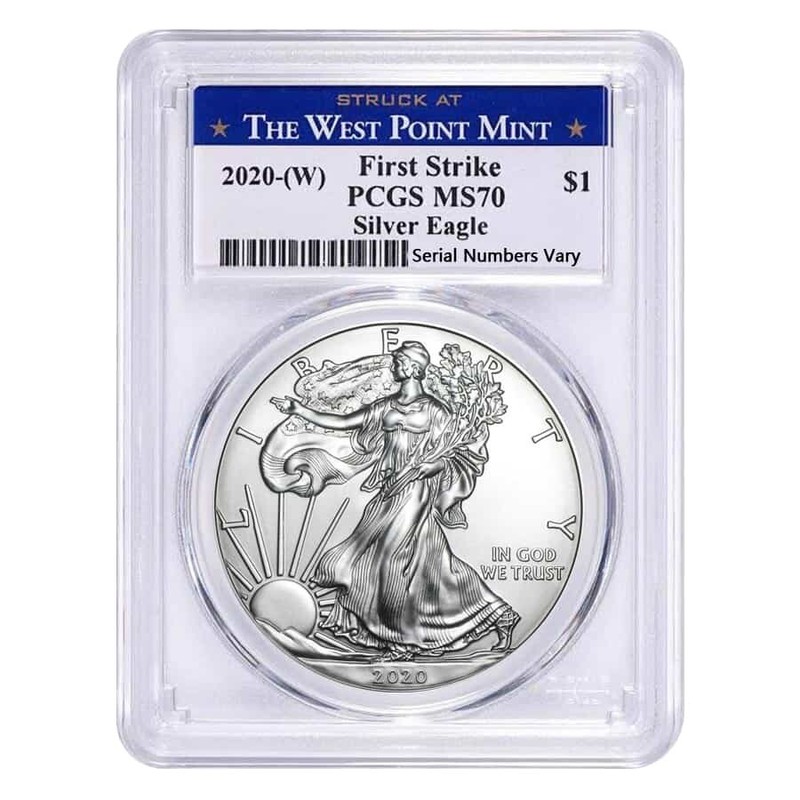 2020 (W) 1 Oz Silver American Eagle $1 Coin Pcgs Ms 70 First Strike (West Point)