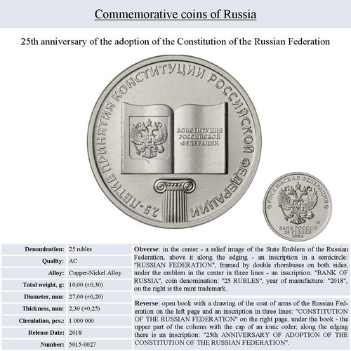25 Rubles 25Th Anniversary Of The Adoption Of The Constitution Of The Russia