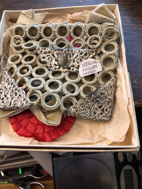 Antique Vintage Sterling Silver Accents Garter Belt Mint In Box Victorian Rare