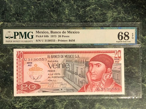Mexico Pick# 64B Banco De Mexico 20 Pesos Pmg 68 Epq Superb Gem Unc!