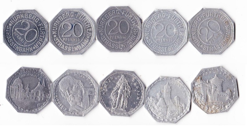 5 * Different Germany Nuremberg 20 Pfennig Notgeld Set 4