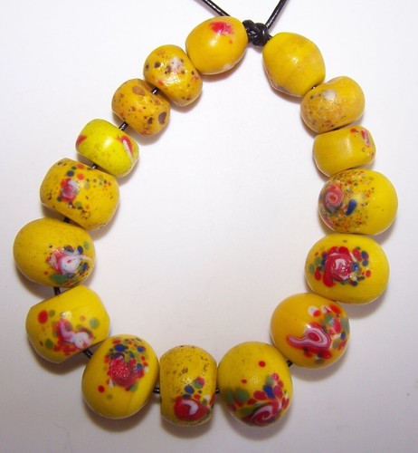 Antique Vintage Trade Beads - Yellow Speckle Floral Lamp Beads - Czech?