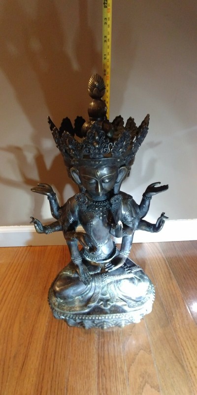 Chinese 20 Inch Bronze Buddha 18Th Century. 8 Arms And 4 Faces. Rare Impressive