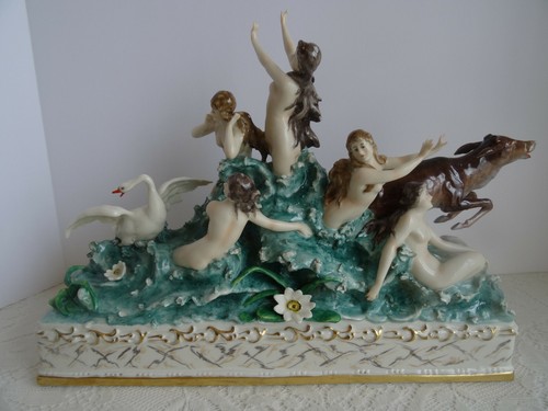 Extremely Rare Porcelain Dresden Figurine Nude Water Nymphs Frolicking - Germany