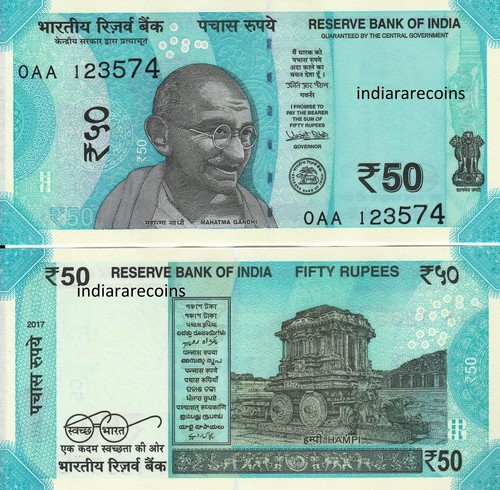 India 2017 New Design Gandhi Series Rare 0Aa Prefix 50 Rs No Inset Bank Note Unc