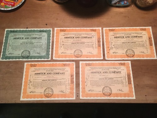 Lot Of 5 1934 Armour And Company Stock Certificates Shares