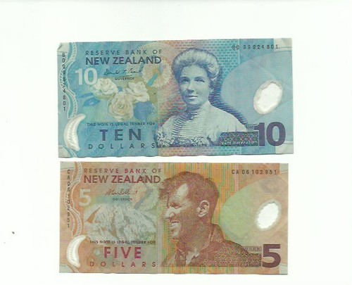 New Zealand (10,5 Dollar ) 2 Banknotes & Free Usa Shipping!