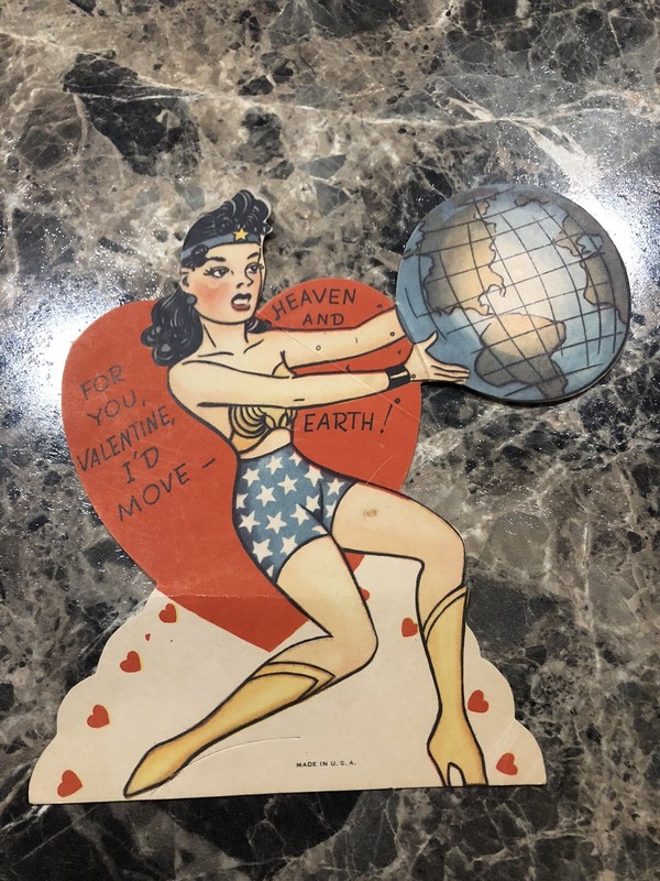 Rare Vintage 6 Wonder Woman 1940S Valentine Card - Made In Usa Dc Comic Antique