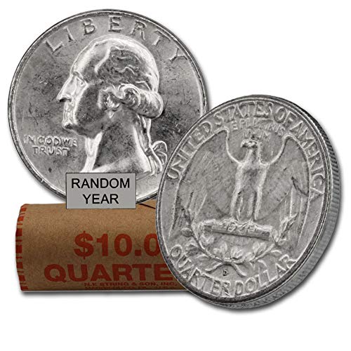 1932-1964 90% Silver Washington Quarters 40-Coin Roll Avg Circ Quarter Very Good