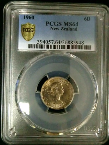 Pcgs Ms64 Gold Shield-New Zealand 1960 Huia Bird 6 Pence Choice Bu