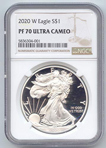 2020 W Proof American Silver Eagle 1 Oz Pf-70 Ngc Brown Label