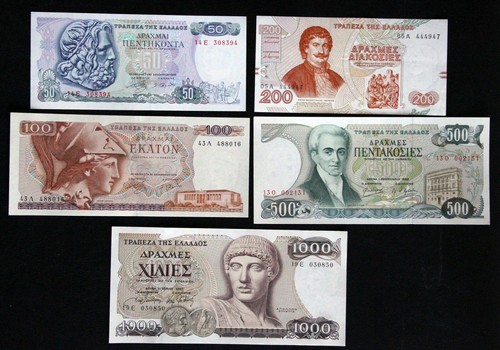 Greece Greek Set Of 5 Banknotes In Drachmas Δραχμες 50 / 100 / 200 / 500 / 1000