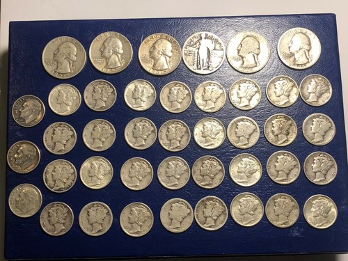 Silver Coin Collection 41 Coins Quarters & Dimes - Estate Find