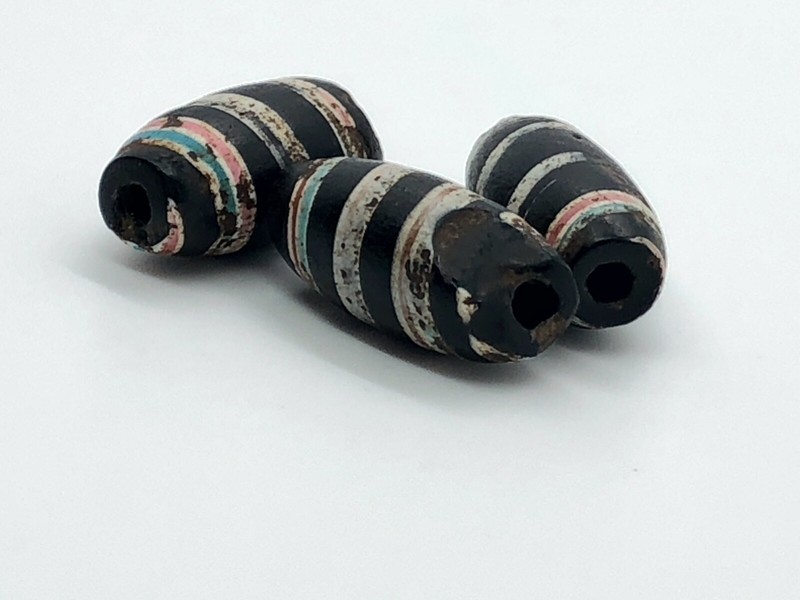 3 Old Antique Venetian African Trade Spiral Beads Black White Red And Green