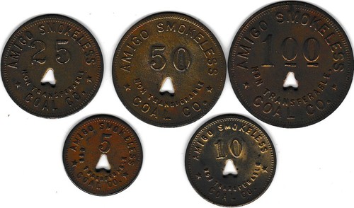 Amigo Smokeless Coal Co., Set Of 5 Coal Script, $1.00, 50C, 25C. 10C, And 5C