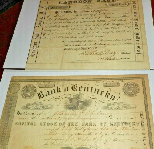 Bank Of Kentucky 1849 & 1858 Langdon Bank Dover, New Hampshre Stock Certificates