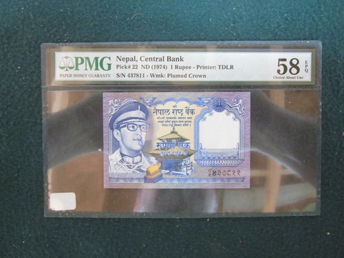 Nepal, Pick #22 Nd (1974) 1 Rupee Pmg 58 Epq