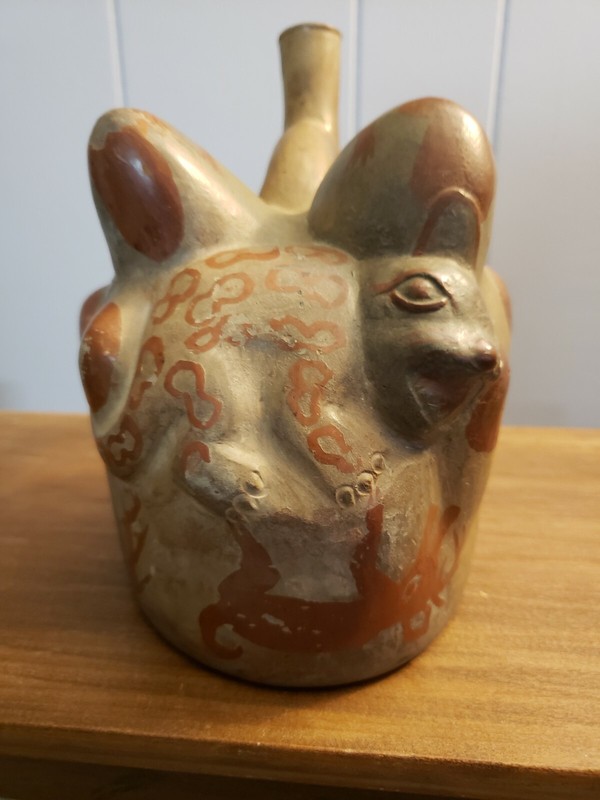 Ex Rare Pre Columbian Moche Jaguar Stirrup Vessel
