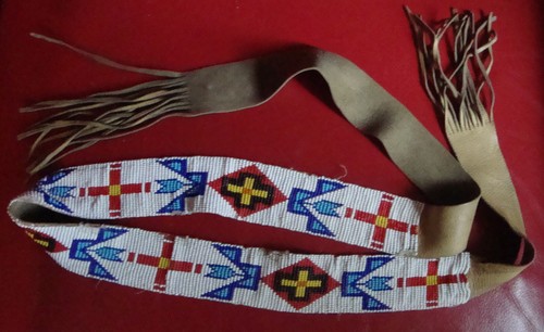Native Southwest Leather Western Belt Antique Beaded 58X2 Decor Costume Cowboy