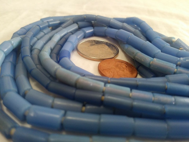 Antique Semi Opaque Matte Blue Glass Tube Beads African Trade Beads