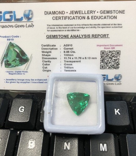 Natural Green Garnet 8.85 Ct Trillion Cut Cert. Loose Gem Private Collection