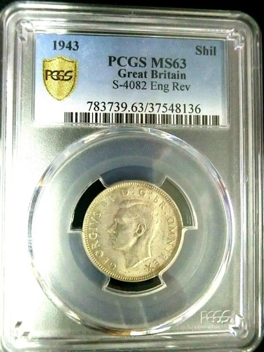 Pcgs Ms63 Gold Shield-Great Britain 1943 George Vi Silver One Shilling Bu Scarce