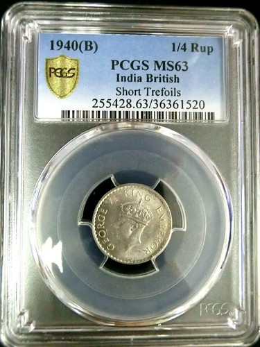 Pcgs Ms63 Gold Shield-India/British 1940(B) George Vi Silver 1/4 Rupee Bu Scarce